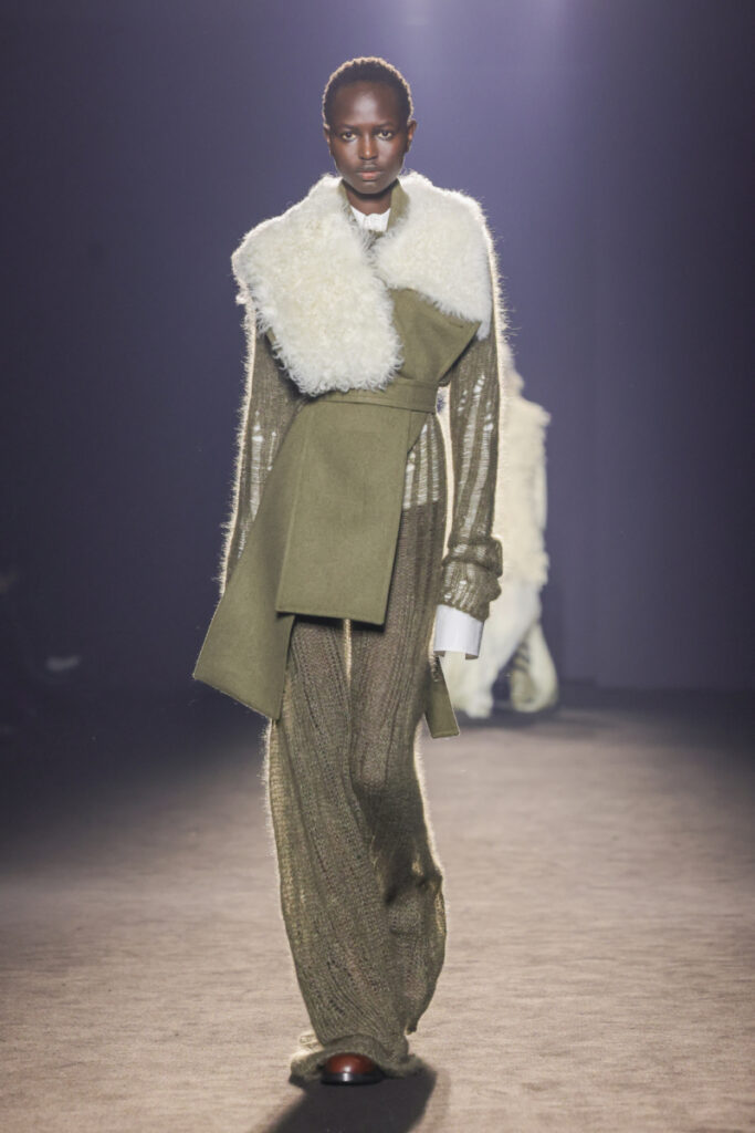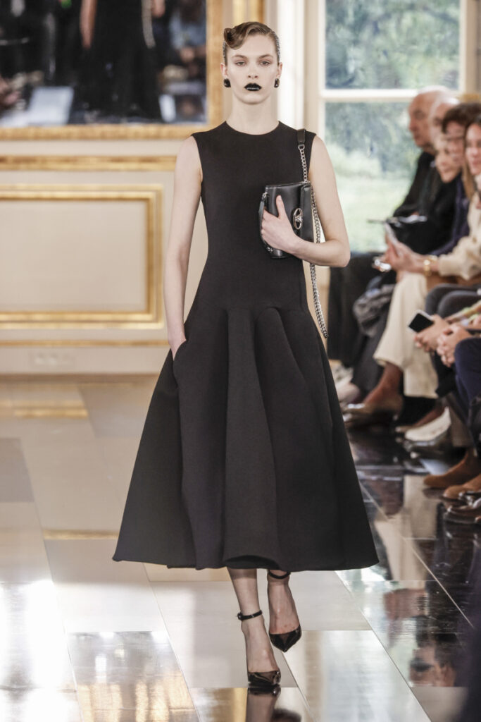 Embora o preto esteja sempre presente nos desfiles, ele merece atenção especial desta vez. Por quê? Muitas casas de moda (incluindo Valentino) basearam seus desfiles exclusivamente nessa cor. Na coleção Gucci, o preto aparece em uma versão charmosa – tule, renda e transparências – enquanto na Hermès ele se manifesta em uma versão mais rock’n’roll com jaquetas de couro, calças de couro e saias lápis. Os designers também se interessam pela combinação clássica do preto e branco, promovendo nos desfiles conjuntos em camadas sobrepostas com camisas e cardigãs grossos.